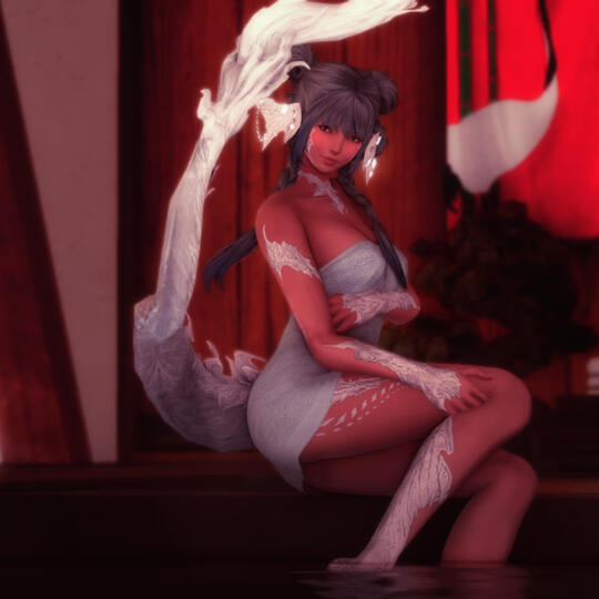 Appearance: A petite white-scaled Raen catches the corner of your eye. Hair as light as grey can be with hints of blue. Eyes like shimmering gold. Adorned with subtle eye make-up and a beauty mark under her left eye. Your eyes wander down further, pastel blue cloth hugged the curves of her body.She turns to smile at a friend in the distance, fangs peek out from the corners of her mouth. Tiny, but sharp. As she makes her way to the friend, the shadows casted by her hair reveal a hidden tattoo.Scent: White peach, lychee, and mintLikes: Watching the night sky while floating in water, baking, cold climates